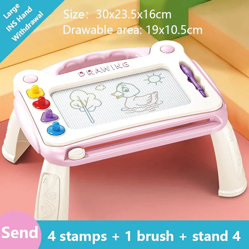 - 🧒 Tablette magnétique avec 4 tampons colorés et un stylet